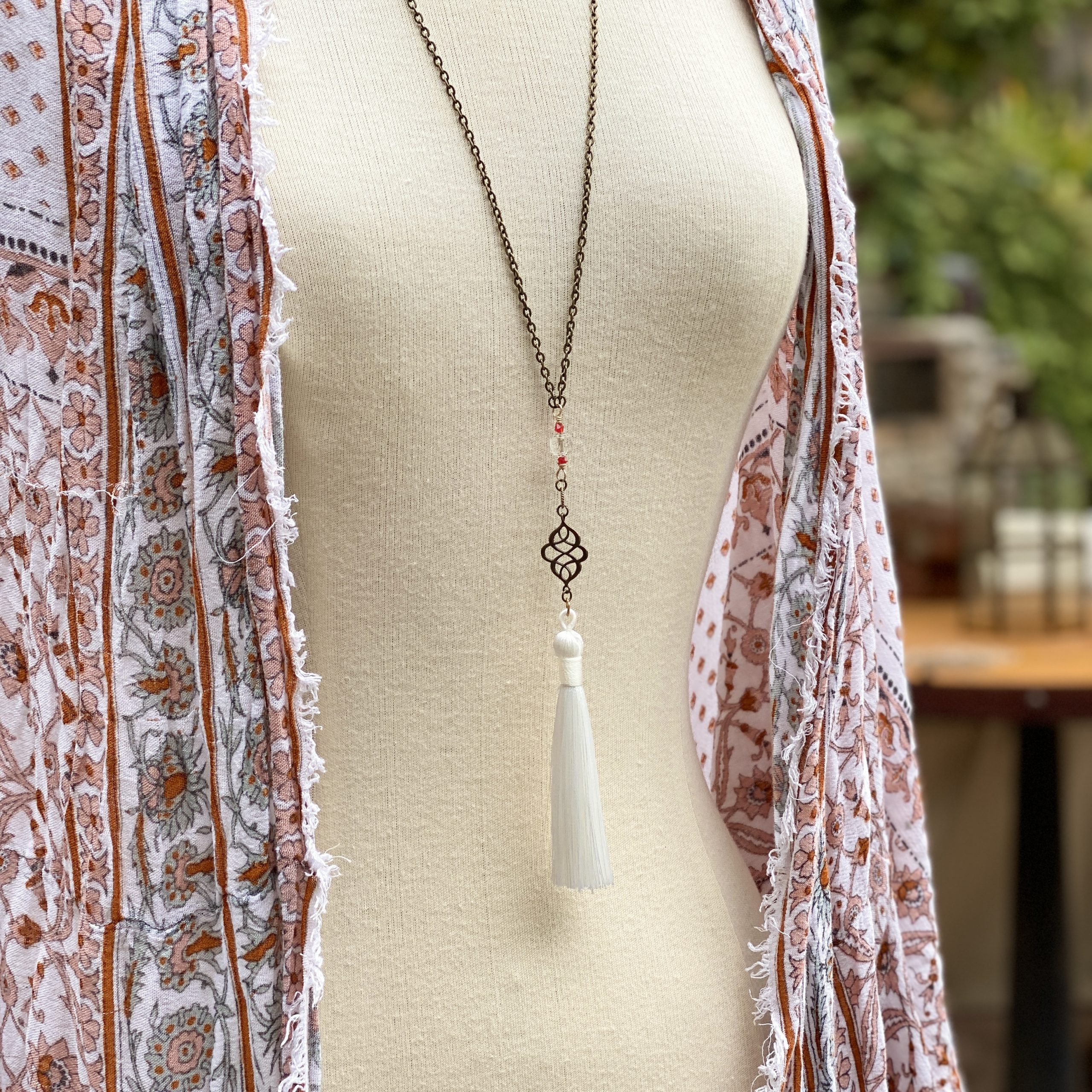 From sea to shining sea, Rock & Tassel started in 2010 in California, moved to Louisiana, and made it all the way to Rhode island where we are now based. All of our jewelry is handmade out of tassels, Swarovski crystal and semi precious gemstones. You will find all the energetic favorites like amethyst, carnelian, onyx, jade, jasper, quartz, obsidian, tigers eye and more! Enjoy and please let us know if you have any questions.
